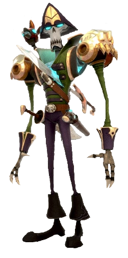 Da spettro aveva un pappagallo che faceva fuoriuscire dalla bocca degli orbs verdi, da cui poi nascevano i Pirati Non-morti. Inoltre, in questa forma, colpiva il terreno con le armi, creando anche qui un'onda.