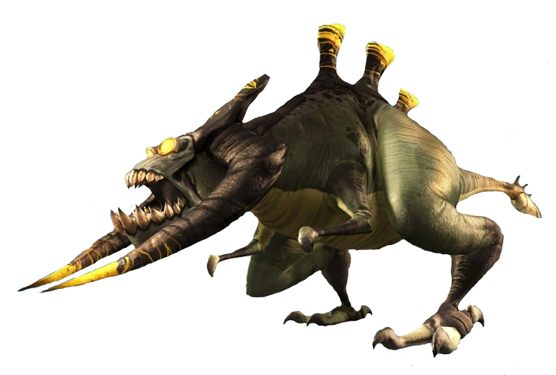 Rettili con due lunghe "corna" ai fianchi della bocca, costernata di denti affilati come rasoi. I Grunthor possiedono prolungamenti sulla schiena e piccole zampette con una sola unghia, a differenza dei piedi che ne hanno tre. I loro occhi sono illuminati di giallo.